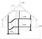 Graficzne opracowanie rzutów poglądowych widocznych na karcie projektu zostało wykonane przez Extradom.pl. Prezentowane przez Extradom.pl wizualizacje wykonane zostały przez autora projektu i należy poczytywać je jedynie za przykład i propozycję wykończenia, wizję architektoniczną autora projektu. Ostateczne wykończenie budynku może nastąpić na wiele sposobów. Szczegółowe rozwiązania zastosowane w oferowanej dokumentacji - w tym również ilość, lokalizacje i wygląd okien, drzwi, kominów - mogą w niewielkim stopniu różnić się od prezentowanej wizualizacji budynku.