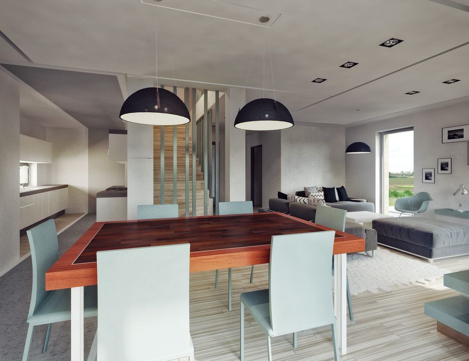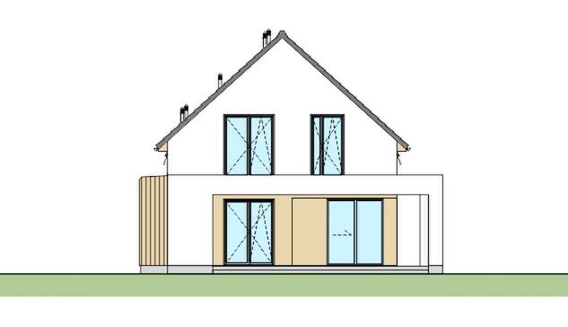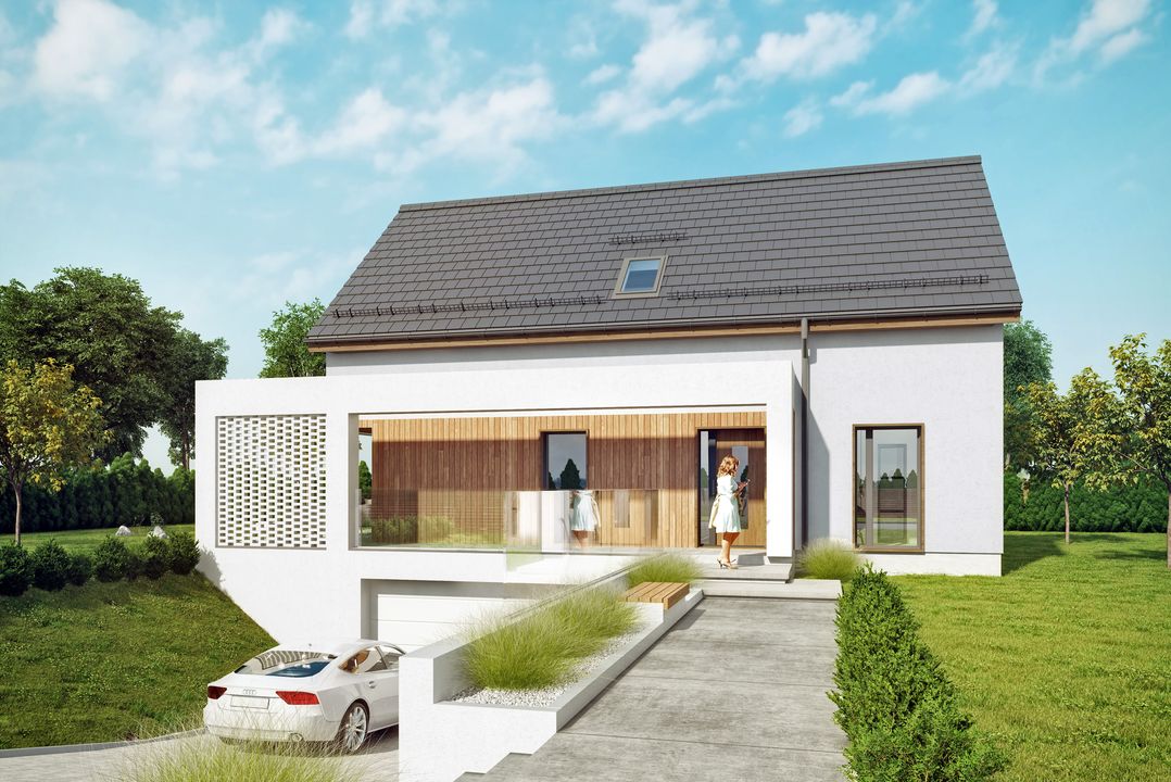 Graficzne opracowanie rzutów poglądowych widocznych na karcie projektu zostało wykonane przez Extradom.pl. Prezentowane przez Extradom.pl wizualizacje wykonane zostały przez autora projektu i należy poczytywać je jedynie za przykład i propozycję wykończenia, wizję architektoniczną autora projektu. Ostateczne wykończenie budynku może nastąpić na wiele sposobów. Szczegółowe rozwiązania zastosowane w oferowanej dokumentacji - w tym również ilość, lokalizacje i wygląd okien, drzwi, kominów - mogą w niewielkim stopniu różnić się od prezentowanej wizualizacji budynku.