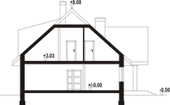Wysokość ścianki kolankowej: 0.64 m. Strop: płyta żelbetowa. Pokrycie dachu: dachówka ceramiczna. Ściany zewnętrzne: pustaki ceramiczne + styropian. Ściany wewnętrzne: pustaki ceramiczne. Typ ogrzewania: kocioł gazowy lub kocioł na paliwo stałe. Instalacje dodatkowe: instalacja solarna.