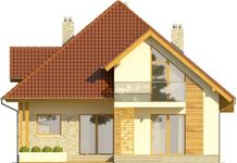 Graficzne opracowanie rzutów poglądowych widocznych na karcie projektu zostało wykonane przez Extradom.pl. Prezentowane przez Extradom.pl wizualizacje wykonane zostały przez autora projektu i należy poczytywać je jedynie za przykład i propozycję wykończenia, wizję architektoniczną autora projektu. Ostateczne wykończenie budynku może nastąpić na wiele sposobów. Szczegółowe rozwiązania zastosowane w oferowanej dokumentacji - w tym również ilość, lokalizacje i wygląd okien, drzwi, kominów - mogą w niewielkim stopniu różnić się od prezentowanej wizualizacji budynku.