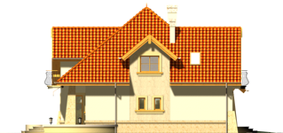 Graficzne opracowanie rzutów poglądowych widocznych na karcie projektu zostało wykonane przez Extradom.pl. Prezentowane przez Extradom.pl wizualizacje wykonane zostały przez autora projektu i należy poczytywać je jedynie za przykład i propozycję wykończenia, wizję architektoniczną autora projektu. Ostateczne wykończenie budynku może nastąpić na wiele sposobów. Szczegółowe rozwiązania zastosowane w oferowanej dokumentacji - w tym również ilość, lokalizacje i wygląd okien, drzwi, kominów - mogą w niewielkim stopniu różnić się od prezentowanej wizualizacji budynku.