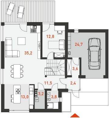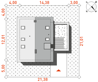 Ściany: bloczek silikatowy + styropian - na etapie adaptacji projektu istnieje możliwość zamiany bloczka silikatowego na inny materiał o podobnych parametrach wytrzymałosciowych, np. na pustak ceramiczny. Elewacja: tynk, laminat HPL - laminat HPL wykorzystany jako materiał dekoracyjny można zamienić na etapie adaptacji projektu na inny, np. na deskę elewacyjną. Stropy: żelbetowe wylewane - na etapie adaptacji projektu istnieje możliwość zmiany technologii stropu na gęstożebrowy lub prefabrykowany. Schody: konstrukcji lekkiej - konstrukcja oraz materiały wykończeniowe schodów przewidziane do indywidualnej aranżacji. Dach: dachówka ceramiczna lub cementowa - konstrukcja więźby przewidziana pod pokrycie ciężkie dla I strefy wiatrowej i II strefy śniegowej.