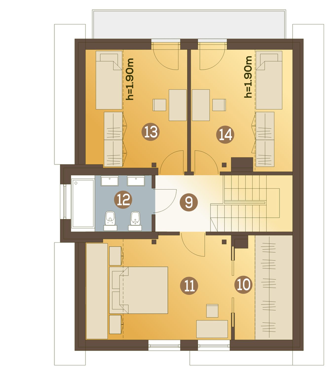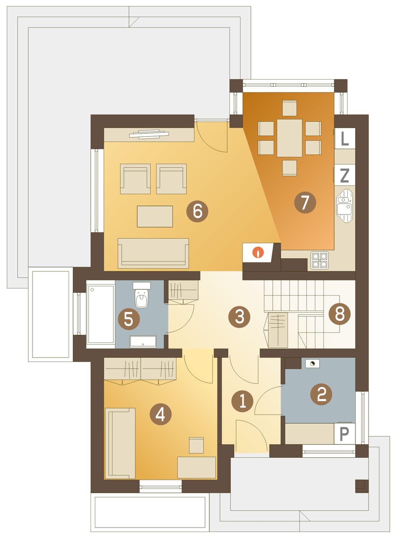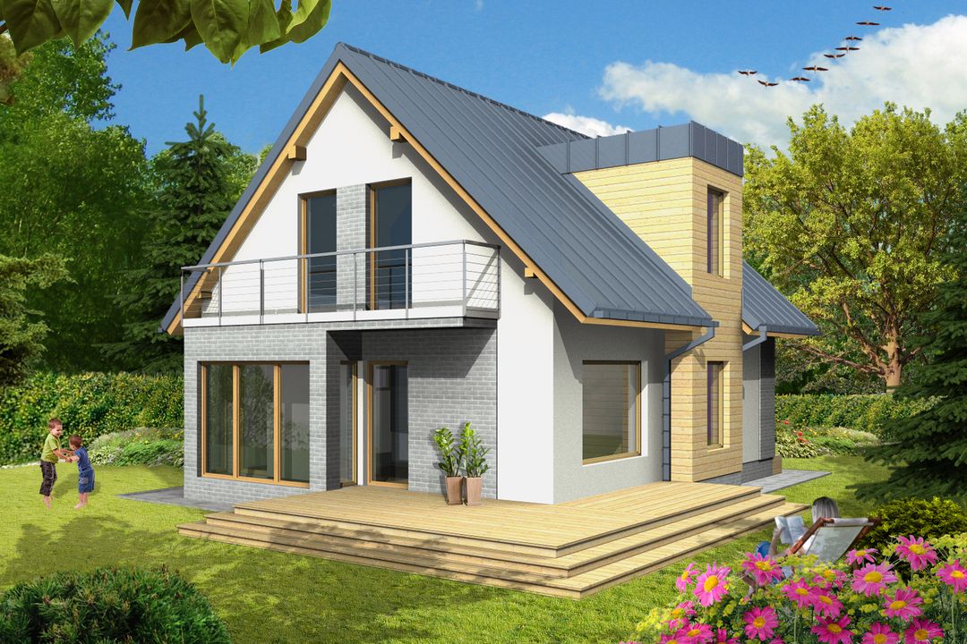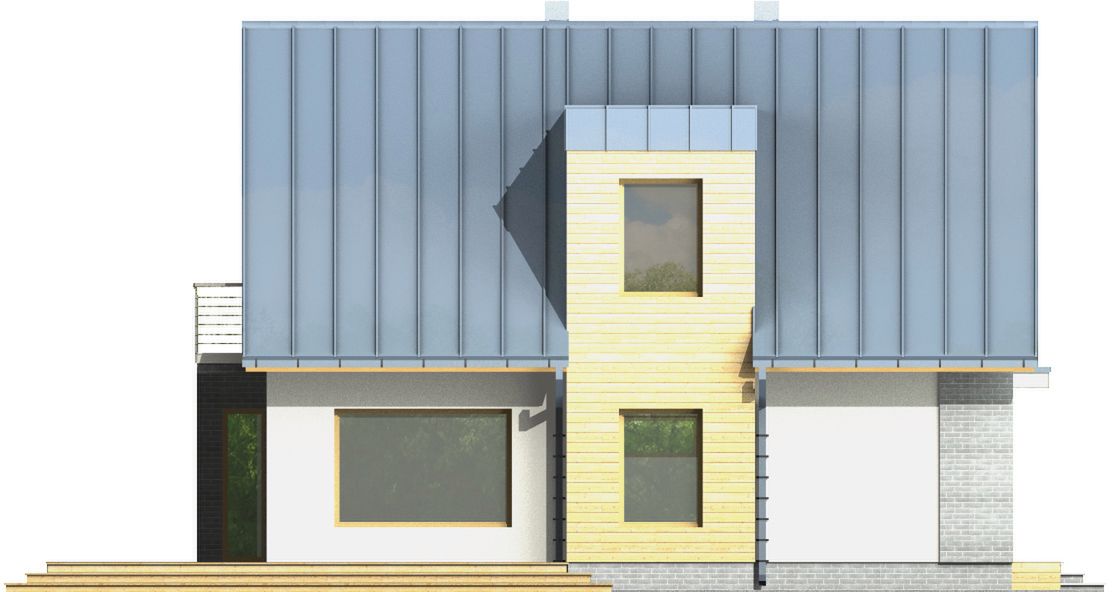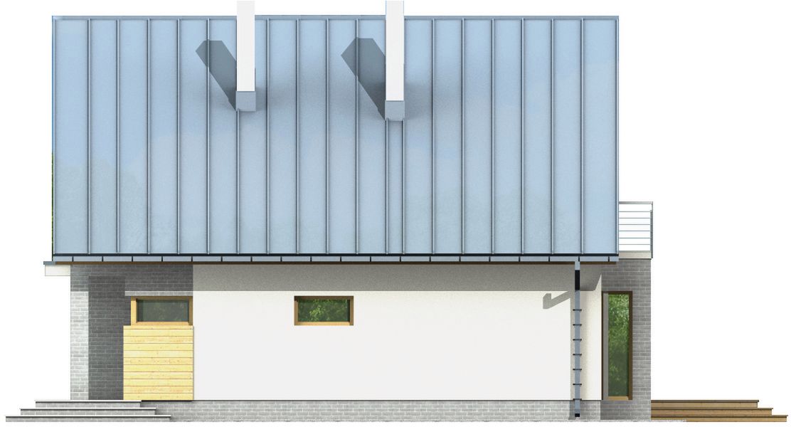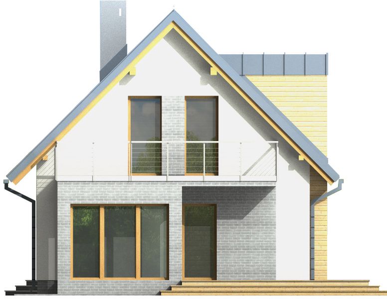 Graficzne opracowanie rzutów poglądowych widocznych na karcie projektu zostało wykonane przez Extradom.pl. Prezentowane przez Extradom.pl wizualizacje wykonane zostały przez autora projektu i należy poczytywać je jedynie za przykład i propozycję wykończenia, wizję architektoniczną autora projektu. Ostateczne wykończenie budynku może nastąpić na wiele sposobów. Szczegółowe rozwiązania zastosowane w oferowanej dokumentacji - w tym również ilość, lokalizacje i wygląd okien, drzwi, kominów - mogą w niewielkim stopniu różnić się od prezentowanej wizualizacji budynku.