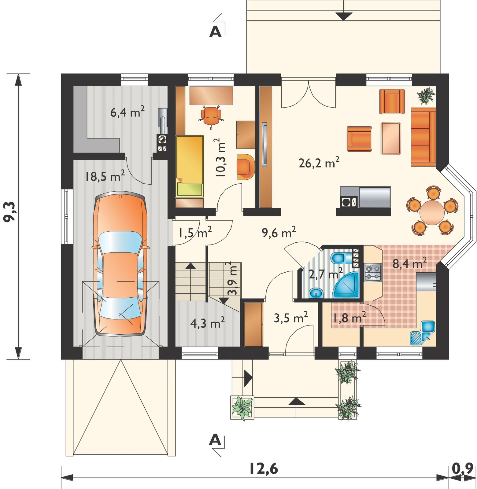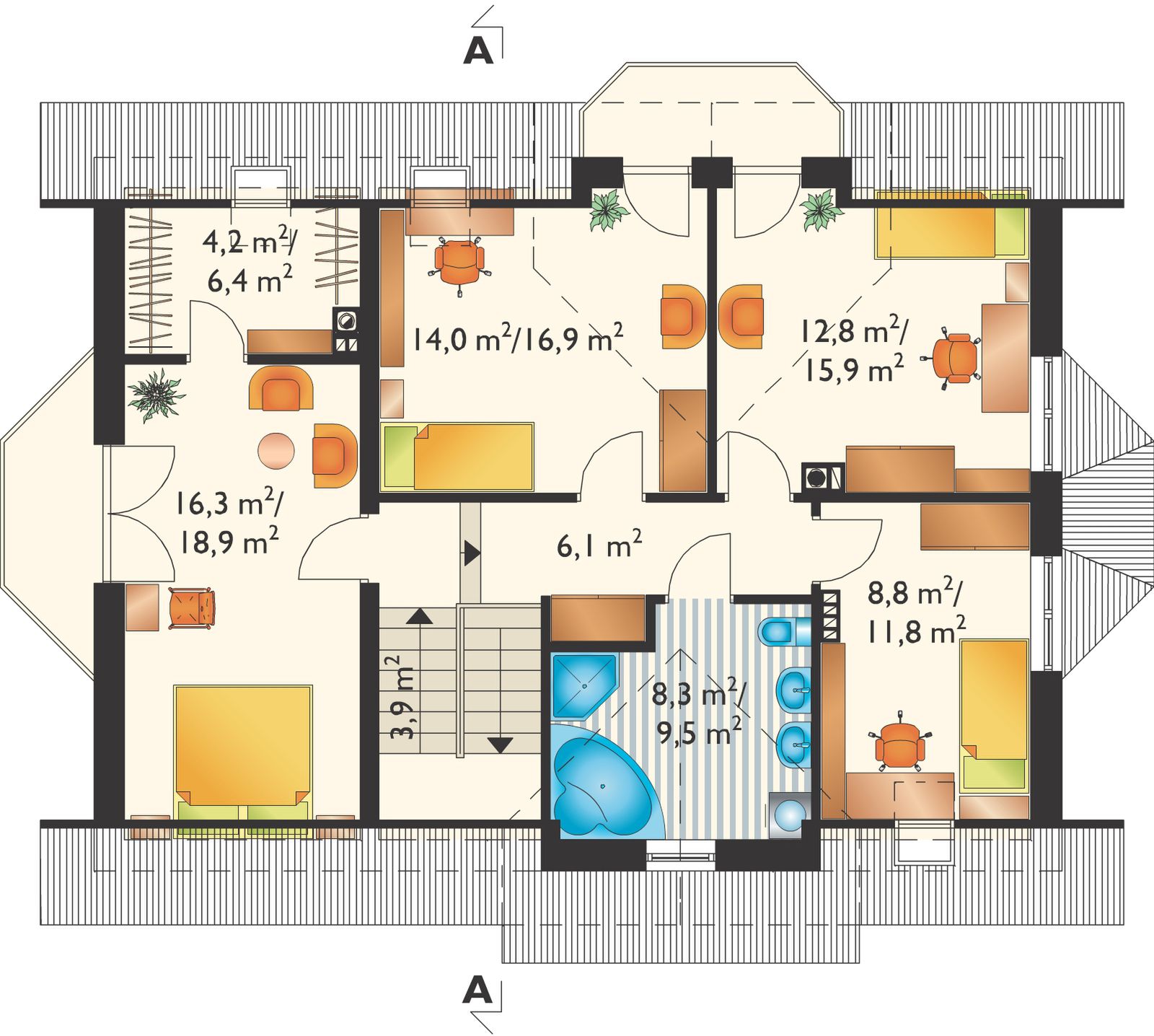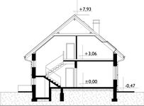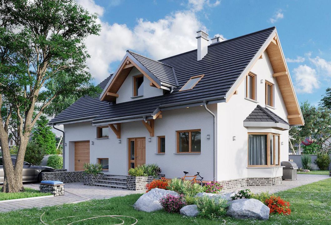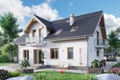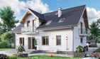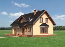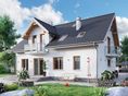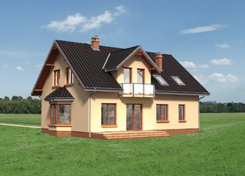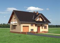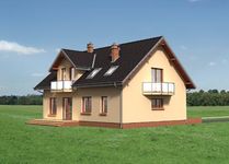 Graficzne opracowanie rzutów poglądowych widocznych na karcie projektu zostało wykonane przez Extradom.pl. Prezentowane przez Extradom.pl wizualizacje wykonane zostały przez autora projektu i należy poczytywać je jedynie za przykład i propozycję wykończenia, wizję architektoniczną autora projektu. Ostateczne wykończenie budynku może nastąpić na wiele sposobów. Szczegółowe rozwiązania zastosowane w oferowanej dokumentacji - w tym również ilość, lokalizacje i wygląd okien, drzwi, kominów - mogą w niewielkim stopniu różnić się od prezentowanej wizualizacji budynku.
