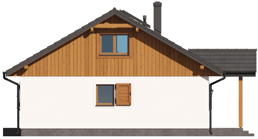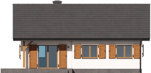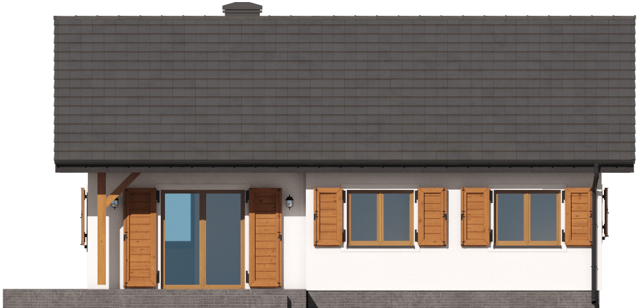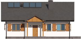 Graficzne opracowanie rzutów poglądowych widocznych na karcie projektu zostało wykonane przez Extradom.pl. Prezentowane przez Extradom.pl wizualizacje wykonane zostały przez autora projektu i należy poczytywać je jedynie za przykład i propozycję wykończenia, wizję architektoniczną autora projektu. Ostateczne wykończenie budynku może nastąpić na wiele sposobów. Szczegółowe rozwiązania zastosowane w oferowanej dokumentacji - w tym również ilość, lokalizacje i wygląd okien, drzwi, kominów - mogą w niewielkim stopniu różnić się od prezentowanej wizualizacji budynku.