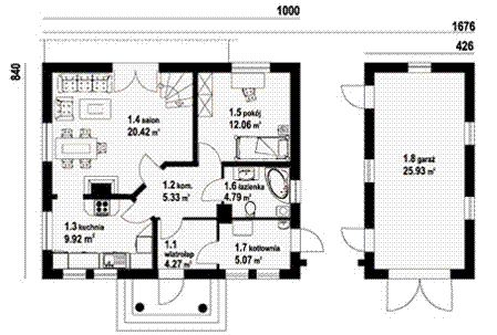 Graficzne opracowanie rzutów poglądowych widocznych na karcie projektu zostało wykonane przez Extradom.pl. Prezentowane przez Extradom.pl wizualizacje wykonane zostały przez autora projektu i należy poczytywać je jedynie za przykład i propozycję wykończenia, wizję architektoniczną autora projektu. Ostateczne wykończenie budynku może nastąpić na wiele sposobów. Szczegółowe rozwiązania zastosowane w oferowanej dokumentacji - w tym również ilość, lokalizacje i wygląd okien, drzwi, kominów - mogą w niewielkim stopniu różnić się od prezentowanej wizualizacji budynku.
