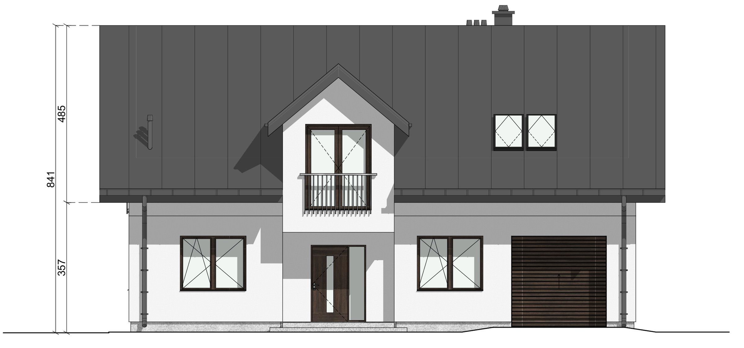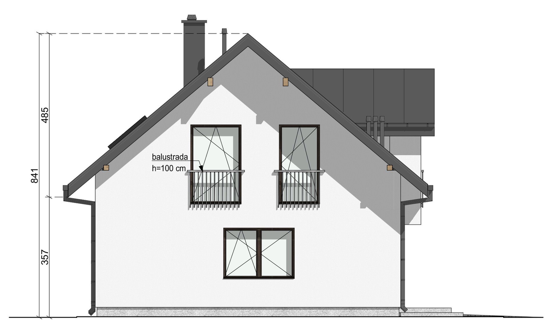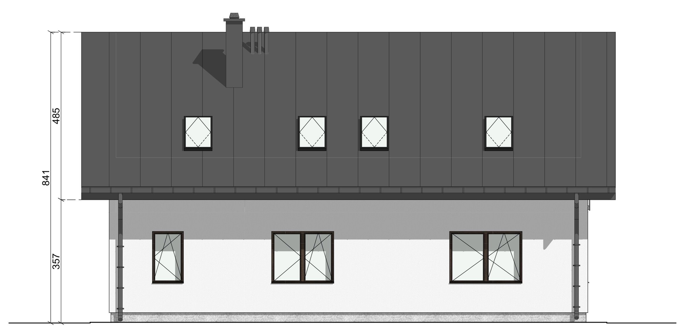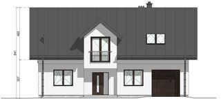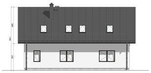 Graficzne opracowanie rzutów poglądowych widocznych na karcie projektu zostało wykonane przez Extradom.pl. Prezentowane przez Extradom.pl wizualizacje wykonane zostały przez autora projektu i należy poczytywać je jedynie za przykład i propozycję wykończenia, wizję architektoniczną autora projektu. Ostateczne wykończenie budynku może nastąpić na wiele sposobów. Szczegółowe rozwiązania zastosowane w oferowanej dokumentacji - w tym również ilość, lokalizacje i wygląd okien, drzwi, kominów - mogą w niewielkim stopniu różnić się od prezentowanej wizualizacji budynku.