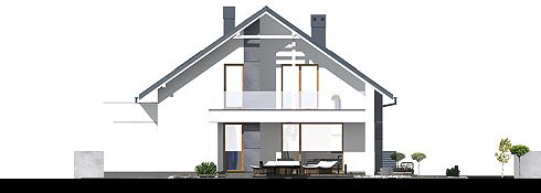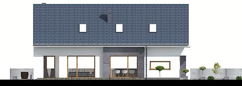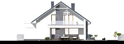 Graficzne opracowanie rzutów poglądowych widocznych na karcie projektu zostało wykonane przez Extradom.pl. Prezentowane przez Extradom.pl wizualizacje wykonane zostały przez autora projektu i należy poczytywać je jedynie za przykład i propozycję wykończenia, wizję architektoniczną autora projektu. Ostateczne wykończenie budynku może nastąpić na wiele sposobów. Szczegółowe rozwiązania zastosowane w oferowanej dokumentacji - w tym również ilość, lokalizacje i wygląd okien, drzwi, kominów - mogą w niewielkim stopniu różnić się od prezentowanej wizualizacji budynku.