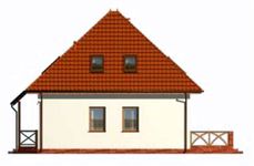 Technologia tradycyjna : - ściany zewnętrzne murowane grubości 30 cm + 10 cm styropian - ściany wewnętrzne (nośne) gr. 25 cm i działowe gr. 12 cm - wszystkie ściany wykonane z pustaków ceramicznych - strop gęstożebrowy o gr. 23 cm - konstrukcja więźby dachowej drewniana w układzie krokwiowym - pokrycie dachówka ceramiczna - projekt posiada kominek - instalacja grzewcza: kocioł gazowy w kotłowni