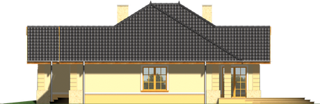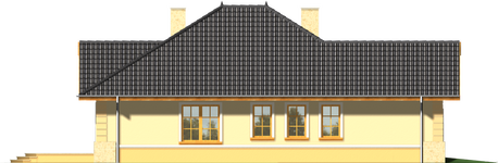 Graficzne opracowanie rzutów poglądowych widocznych na karcie projektu zostało wykonane przez Extradom.pl. Prezentowane przez Extradom.pl wizualizacje wykonane zostały przez autora projektu i należy poczytywać je jedynie za przykład i propozycję wykończenia, wizję architektoniczną autora projektu. Ostateczne wykończenie budynku może nastąpić na wiele sposobów. Szczegółowe rozwiązania zastosowane w oferowanej dokumentacji - w tym również ilość, lokalizacje i wygląd okien, drzwi, kominów - mogą w niewielkim stopniu różnić się od prezentowanej wizualizacji budynku.