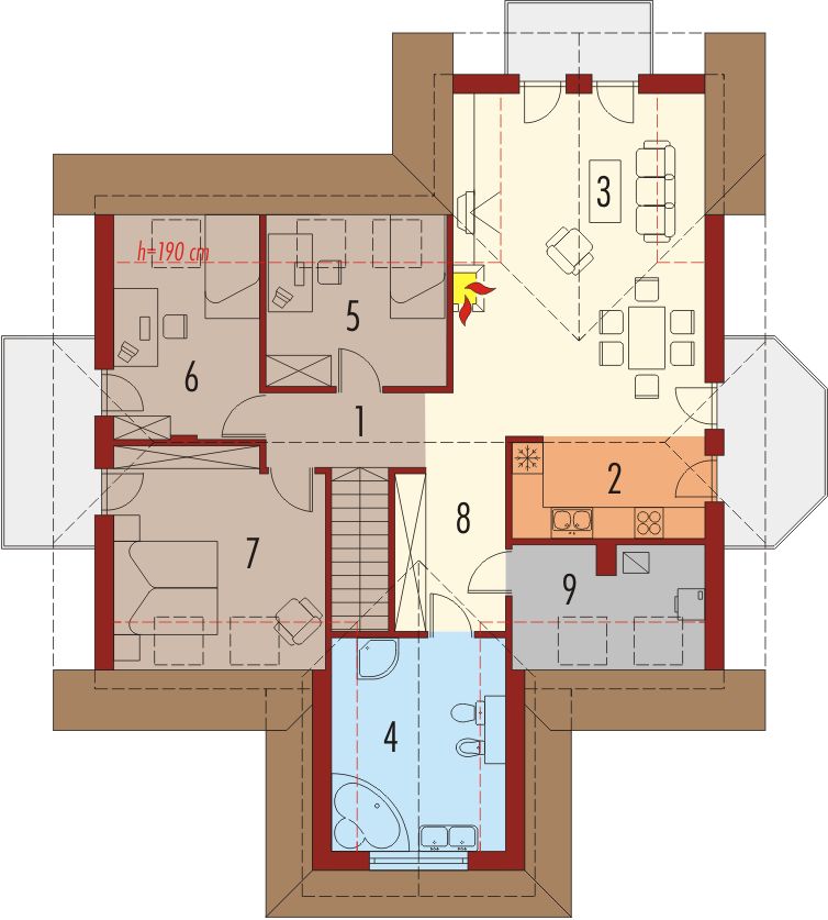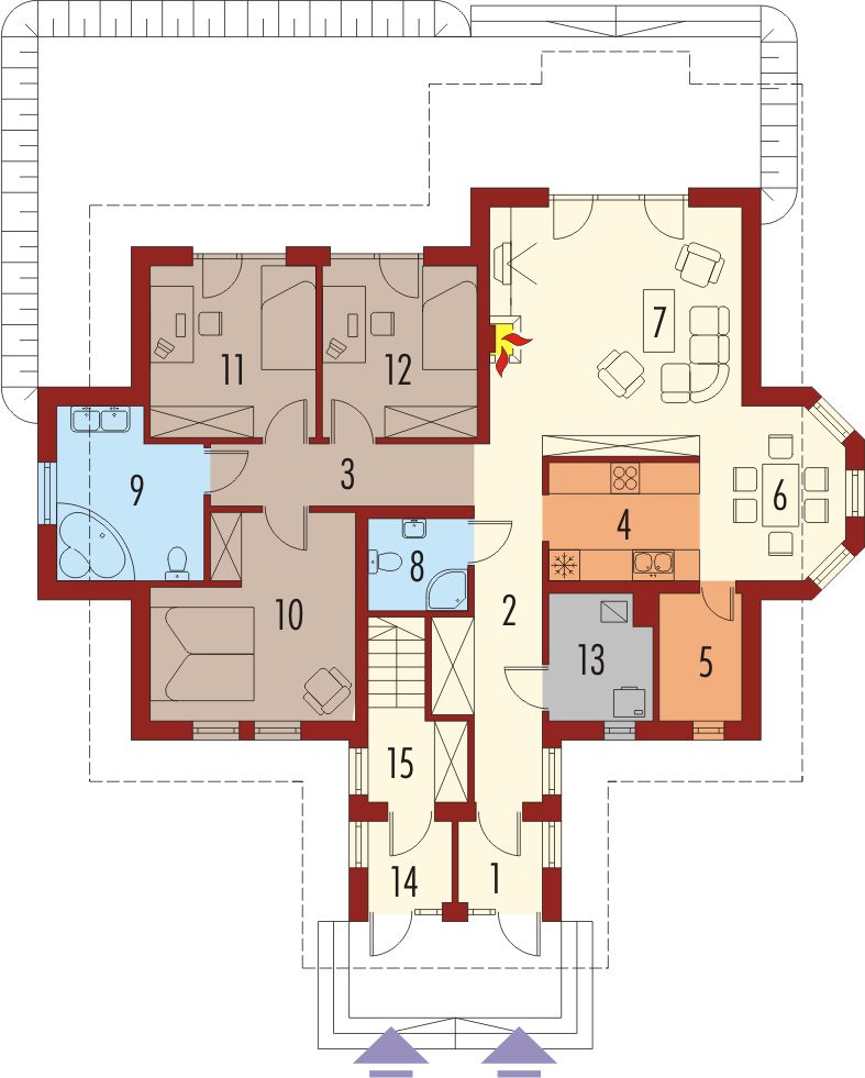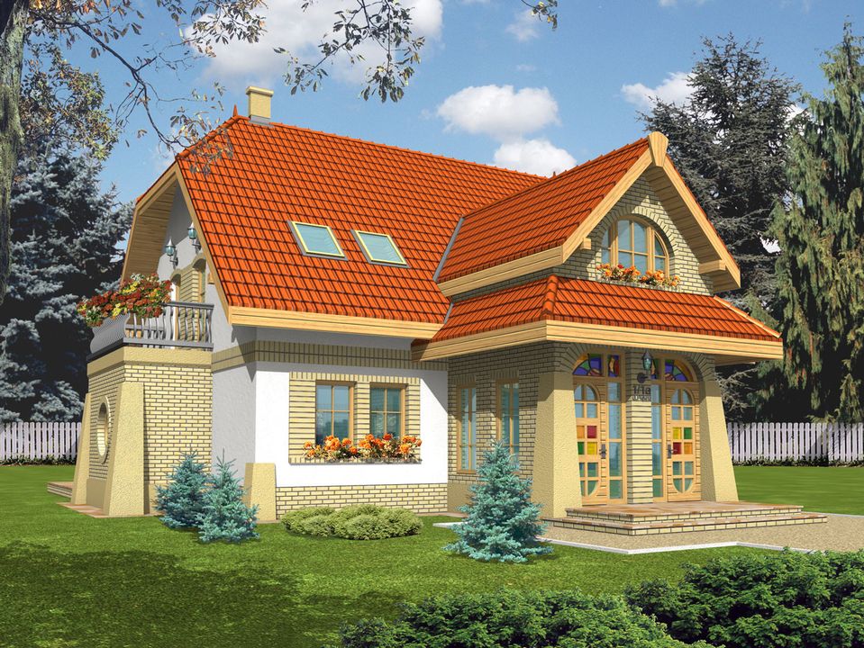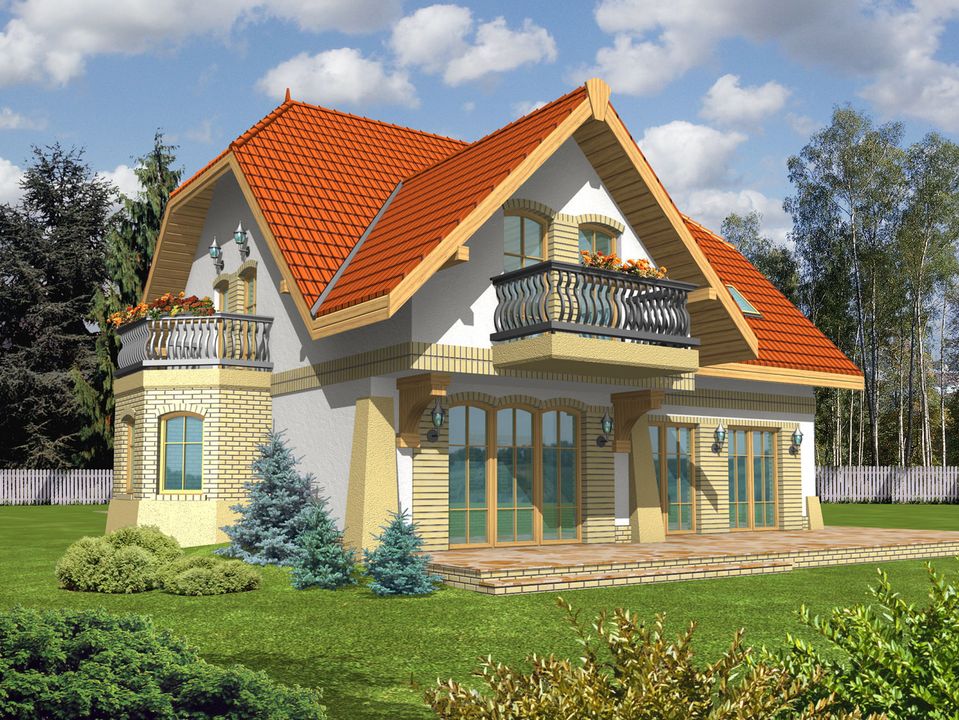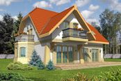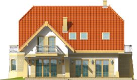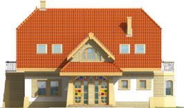 Graficzne opracowanie rzutów poglądowych widocznych na karcie projektu zostało wykonane przez Extradom.pl. Prezentowane przez Extradom.pl wizualizacje wykonane zostały przez autora projektu i należy poczytywać je jedynie za przykład i propozycję wykończenia, wizję architektoniczną autora projektu. Ostateczne wykończenie budynku może nastąpić na wiele sposobów. Szczegółowe rozwiązania zastosowane w oferowanej dokumentacji - w tym również ilość, lokalizacje i wygląd okien, drzwi, kominów - mogą w niewielkim stopniu różnić się od prezentowanej wizualizacji budynku.