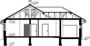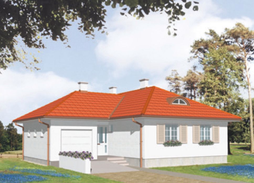 Graficzne opracowanie rzutów poglądowych widocznych na karcie projektu zostało wykonane przez Extradom.pl. Prezentowane przez Extradom.pl wizualizacje wykonane zostały przez autora projektu i należy poczytywać je jedynie za przykład i propozycję wykończenia, wizję architektoniczną autora projektu. Ostateczne wykończenie budynku może nastąpić na wiele sposobów. Szczegółowe rozwiązania zastosowane w oferowanej dokumentacji - w tym również ilość, lokalizacje i wygląd okien, drzwi, kominów - mogą w niewielkim stopniu różnić się od prezentowanej wizualizacji budynku.