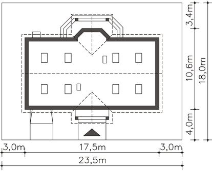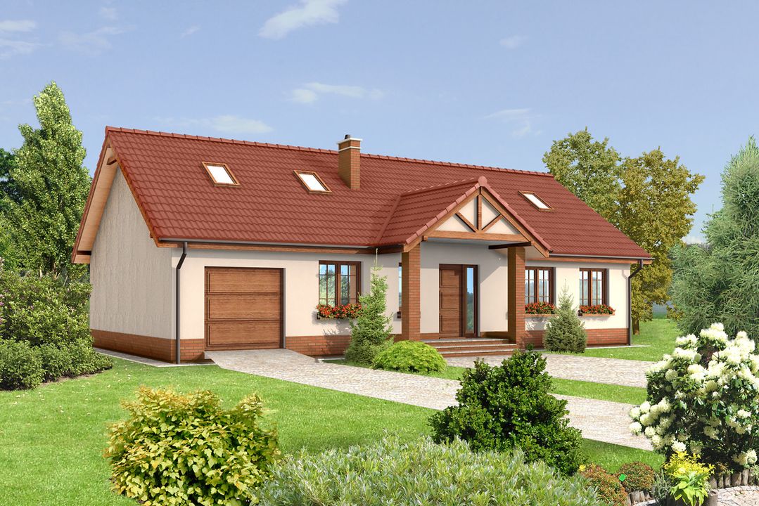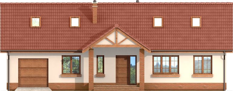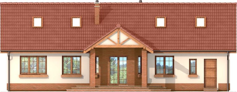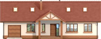 Graficzne opracowanie rzutów poglądowych widocznych na karcie projektu zostało wykonane przez Extradom.pl. Prezentowane przez Extradom.pl wizualizacje wykonane zostały przez autora projektu i należy poczytywać je jedynie za przykład i propozycję wykończenia, wizję architektoniczną autora projektu. Ostateczne wykończenie budynku może nastąpić na wiele sposobów. Szczegółowe rozwiązania zastosowane w oferowanej dokumentacji - w tym również ilość, lokalizacje i wygląd okien, drzwi, kominów - mogą w niewielkim stopniu różnić się od prezentowanej wizualizacji budynku.