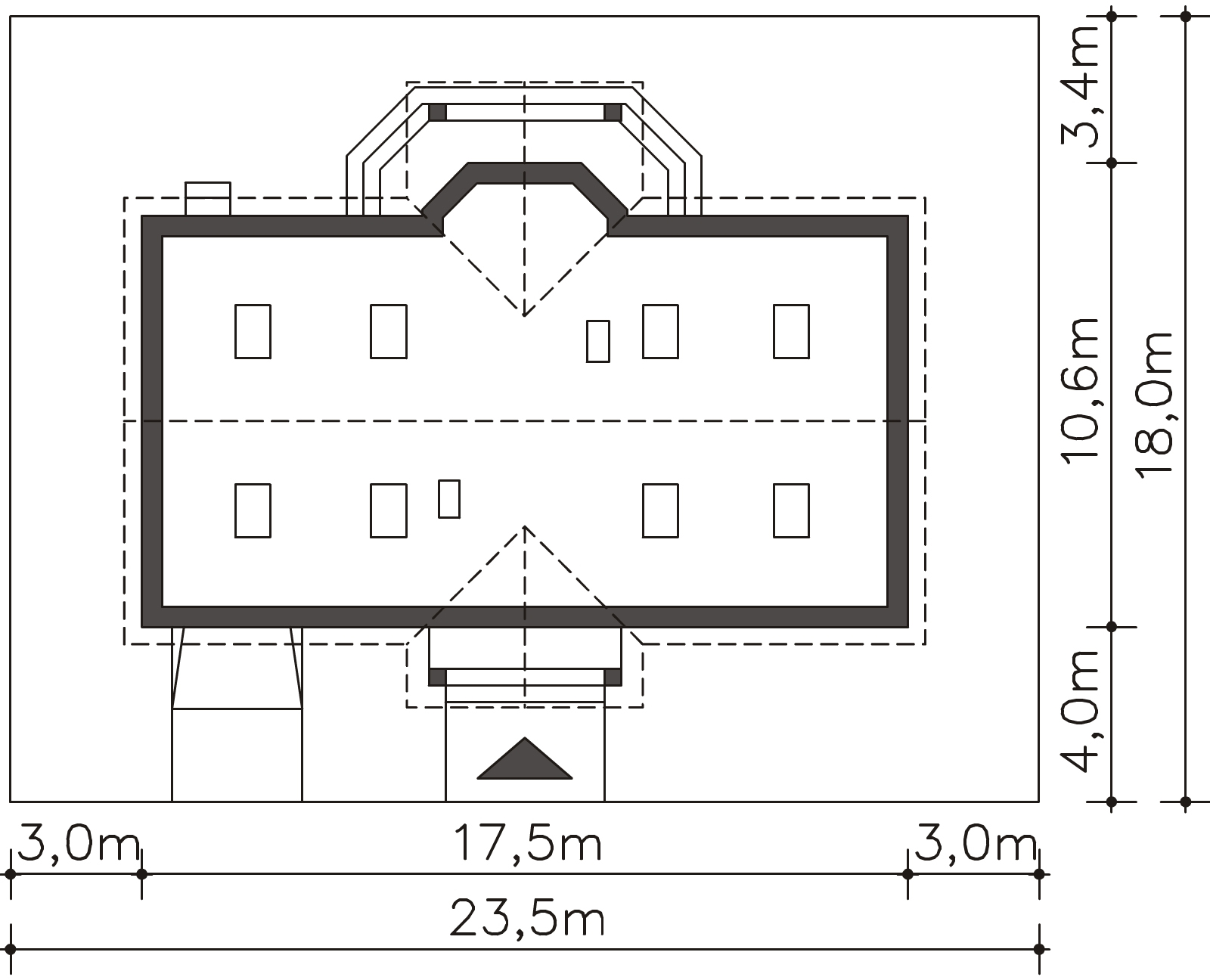 Ze względu na dostosowanie projektu do aktualnych norm wymiary budynku mogą ulec zmianie.
