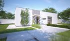 Fundamenty - płyta fundamentowa. Ściany zewnętrzne - Bloczek betonu komórkowego 24 cm + styropian 20 cm. Strop - gęstożebrowy. Dach - stropodach żelbetowy. Ogrzewanie - c.o. grzejnikowe + c.w.u. - kocioł gazowy Ogrzewanie - Wersja na zmówienie: c.o.+c.w.u. pompa ciepła powietrze woda. Wentylacja - rekuperacja.