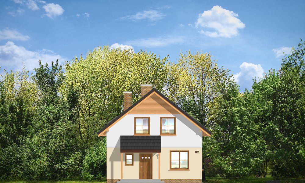 Fundamenty: betonowe wylewane. Ściany zewnętrzne: konstrukcja drewniana szkieletowa z kantówki 14x4 + OSB + docieplenie wełną mineralną 10 cm + tynk cienkowarstwowy. Strop: belkowy drewniany. Elewacje: tynk cienkowarstwowy. Pokrycie dachu: blachodachówka lub dachówka. Nachylenie dachu: 38 stopnie.