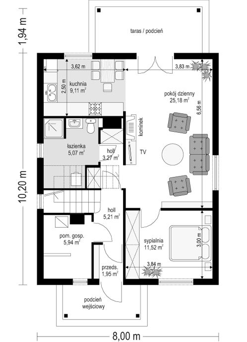 PROJEKT Z BUDOWĄ Istnieje możliwość zaadaptowania tego projektu do technologii prefabrykowanej/modułowej i budowy nawet w 6 miesięcy ze stałym kosztem budowy