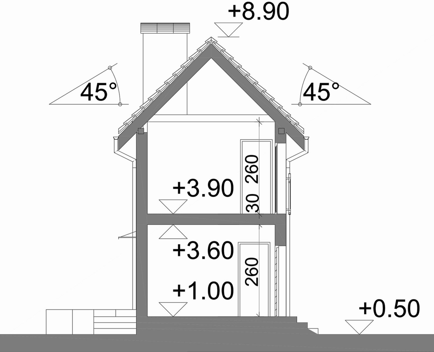 Ławy fundamentowe ze ścianami fundamentowymi z bloczków betonowych. Ściany zewnętrzne Ytong Energo 48cm. Ściany wewnętrzne G-K 12 cm. Pokrycie dachu: blachdachówka lub dachówka ceramiczna. Elewacje: tynk akrylowy na fragmentach płyty włóknowo-cementowe.