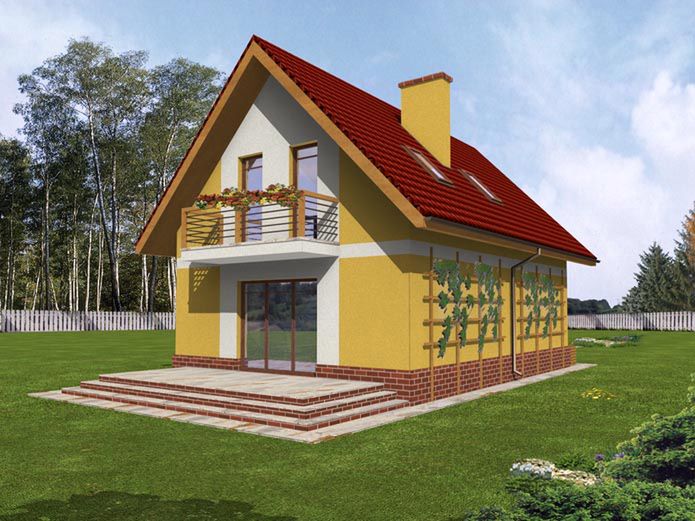 Graficzne opracowanie rzutów poglądowych widocznych na karcie projektu zostało wykonane przez Extradom.pl. Prezentowane przez Extradom.pl wizualizacje wykonane zostały przez autora projektu i należy poczytywać je jedynie za przykład i propozycję wykończenia, wizję architektoniczną autora projektu. Ostateczne wykończenie budynku może nastąpić na wiele sposobów. Szczegółowe rozwiązania zastosowane w oferowanej dokumentacji - w tym również ilość, lokalizacje i wygląd okien, drzwi, kominów - mogą w niewielkim stopniu różnić się od prezentowanej wizualizacji budynku.