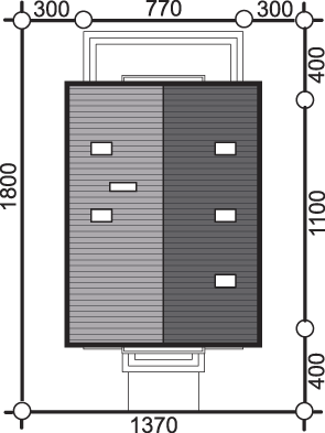 Budynek został zaprojektowany w technologii murowanej ściany jednowarstwowej z bloczka gazobetonowego ze stropem gęstożebrowym. Dach o konstrukcji drewnianej kryty dachówką ceramiczną. Elewacje wykonano z tynku strukturalnego, cokół z okladziny lub cegły klinkierowej. Stolarka okienna drewniana lub PCV.
