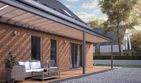 Graficzne opracowanie rzutów poglądowych widocznych na karcie projektu zostało wykonane przez Extradom.pl. Prezentowane przez Extradom.pl wizualizacje wykonane zostały przez autora projektu i należy poczytywać je jedynie za przykład i propozycję wykończenia, wizję architektoniczną autora projektu. Ostateczne wykończenie budynku może nastąpić na wiele sposobów. Szczegółowe rozwiązania zastosowane w oferowanej dokumentacji - w tym również ilość, lokalizacje i wygląd okien, drzwi, kominów - mogą w niewielkim stopniu różnić się od prezentowanej wizualizacji budynku.