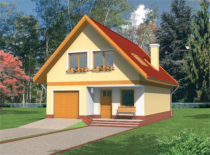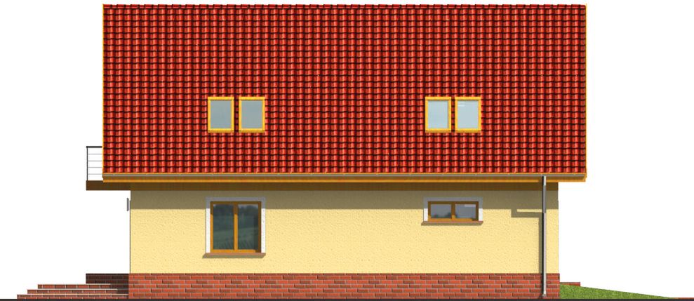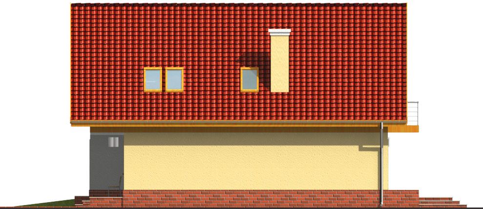 Graficzne opracowanie rzutów poglądowych widocznych na karcie projektu zostało wykonane przez Extradom.pl. Prezentowane przez Extradom.pl wizualizacje wykonane zostały przez autora projektu i należy poczytywać je jedynie za przykład i propozycję wykończenia, wizję architektoniczną autora projektu. Ostateczne wykończenie budynku może nastąpić na wiele sposobów. Szczegółowe rozwiązania zastosowane w oferowanej dokumentacji - w tym również ilość, lokalizacje i wygląd okien, drzwi, kominów - mogą w niewielkim stopniu różnić się od prezentowanej wizualizacji budynku.