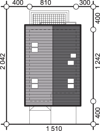 Budynek został zaprojektowany w technologii murowanej ściany jednowarstwowej z bloczka gazobetonowego grubości 40cm ze stropem gęstożebrowym. Dach o konstrukcji drewnianej kryty dachówką ceramiczną. Elewacje wykonano z tynku strukturalnego, cokół z okladziny lub cegły klinkierowej. Stolarka okienna drewniana lub PCV.