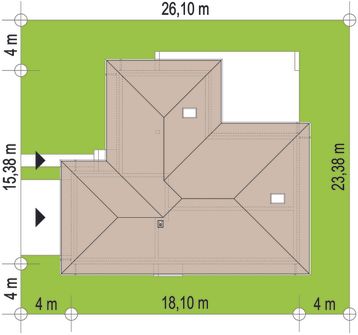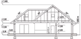Graficzne opracowanie rzutów poglądowych widocznych na karcie projektu zostało wykonane przez Extradom.pl. Prezentowane przez Extradom.pl wizualizacje wykonane zostały przez autora projektu i należy poczytywać je jedynie za przykład i propozycję wykończenia, wizję architektoniczną autora projektu. Ostateczne wykończenie budynku może nastąpić na wiele sposobów. Szczegółowe rozwiązania zastosowane w oferowanej dokumentacji - w tym również ilość, lokalizacje i wygląd okien, drzwi, kominów - mogą w niewielkim stopniu różnić się od prezentowanej wizualizacji budynku.
