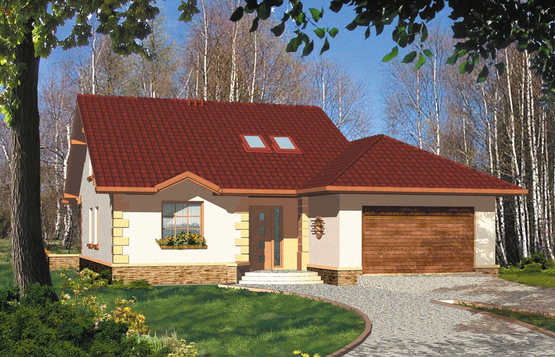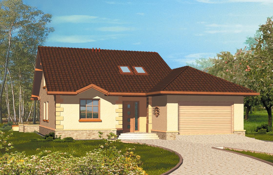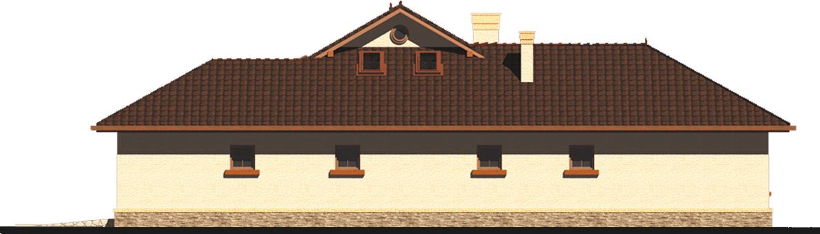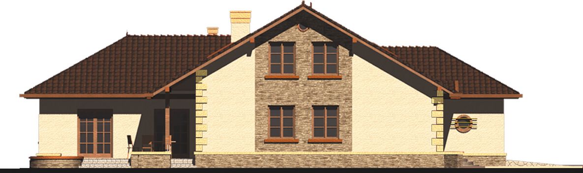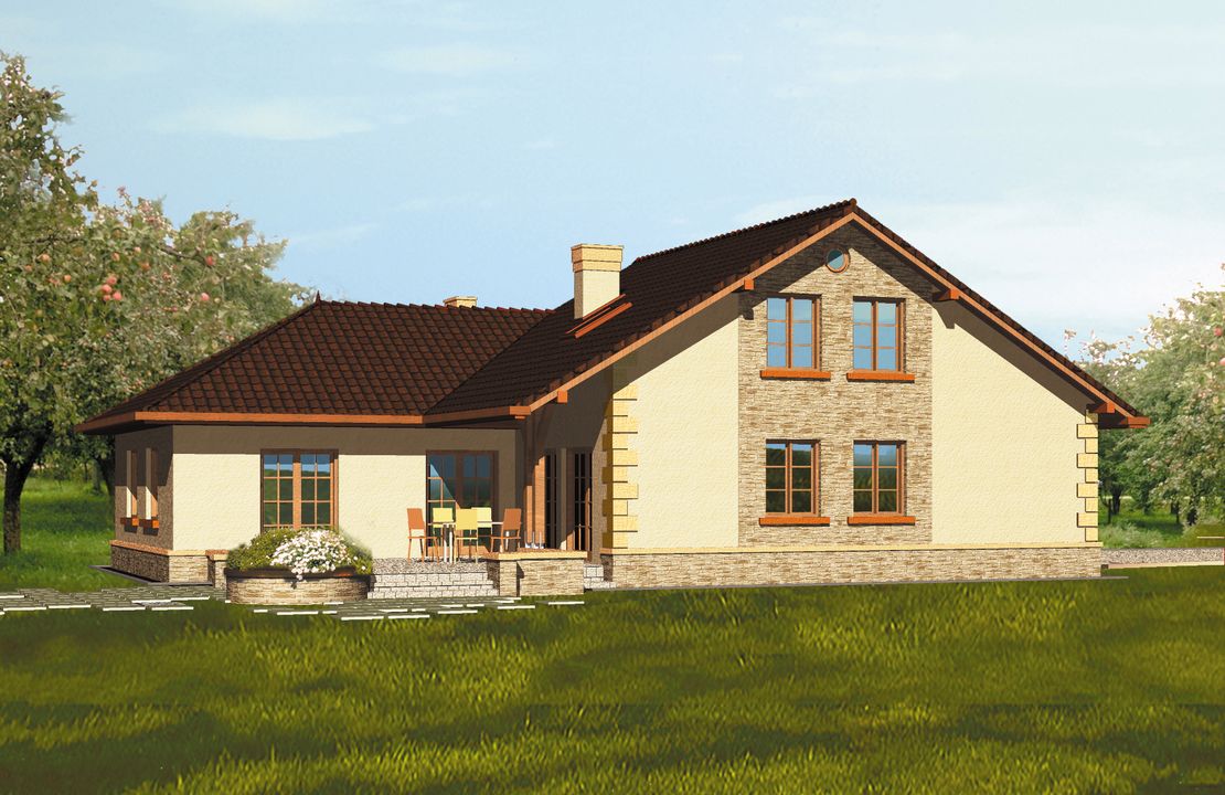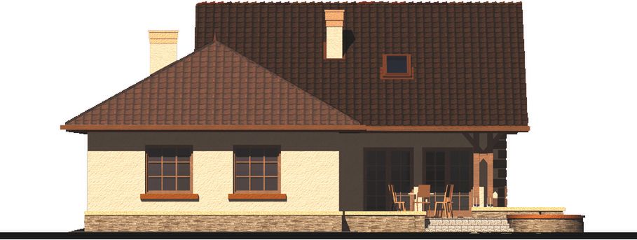 Graficzne opracowanie rzutów poglądowych widocznych na karcie projektu zostało wykonane przez Extradom.pl. Prezentowane przez Extradom.pl wizualizacje wykonane zostały przez autora projektu i należy poczytywać je jedynie za przykład i propozycję wykończenia, wizję architektoniczną autora projektu. Ostateczne wykończenie budynku może nastąpić na wiele sposobów. Szczegółowe rozwiązania zastosowane w oferowanej dokumentacji - w tym również ilość, lokalizacje i wygląd okien, drzwi, kominów - mogą w niewielkim stopniu różnić się od prezentowanej wizualizacji budynku.