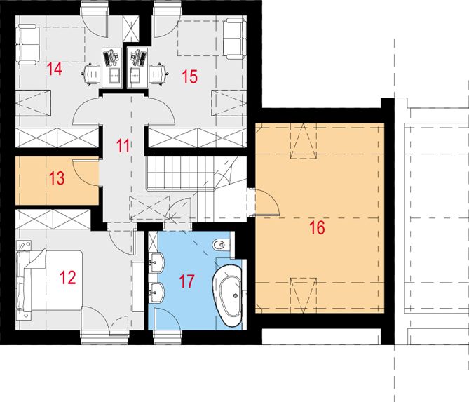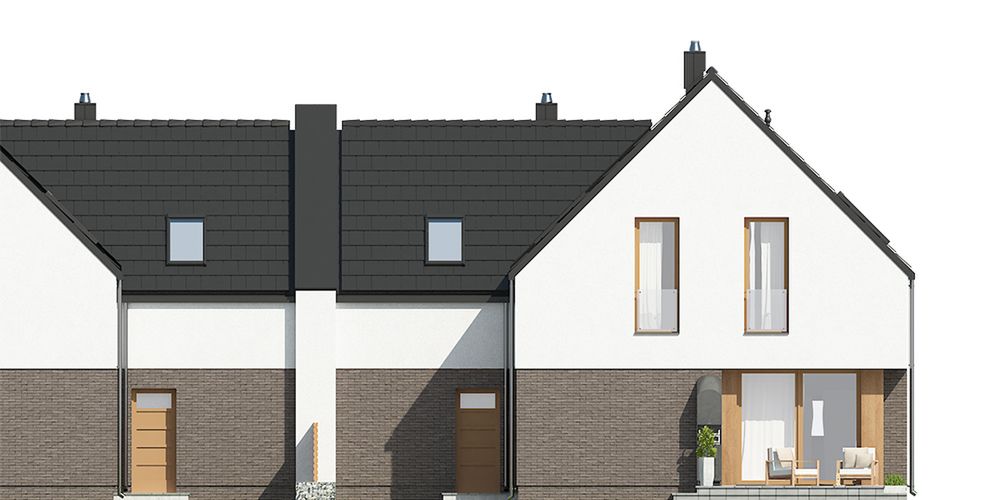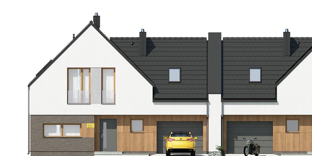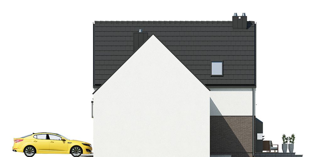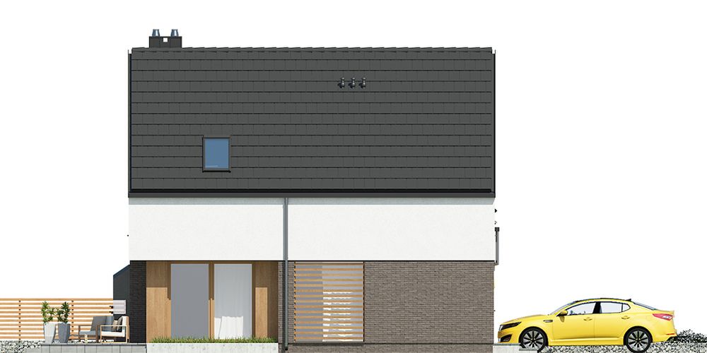 Graficzne opracowanie rzutów poglądowych widocznych na karcie projektu zostało wykonane przez Extradom.pl. Prezentowane przez Extradom.pl wizualizacje wykonane zostały przez autora projektu i należy poczytywać je jedynie za przykład i propozycję wykończenia, wizję architektoniczną autora projektu. Ostateczne wykończenie budynku może nastąpić na wiele sposobów. Szczegółowe rozwiązania zastosowane w oferowanej dokumentacji - w tym również ilość, lokalizacje i wygląd okien, drzwi, kominów - mogą w niewielkim stopniu różnić się od prezentowanej wizualizacji budynku.