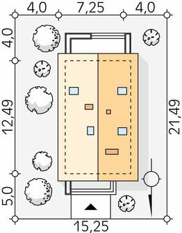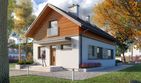 Graficzne opracowanie rzutów poglądowych widocznych na karcie projektu zostało wykonane przez Extradom.pl. Prezentowane przez Extradom.pl wizualizacje wykonane zostały przez autora projektu i należy poczytywać je jedynie za przykład i propozycję wykończenia, wizję architektoniczną autora projektu. Ostateczne wykończenie budynku może nastąpić na wiele sposobów. Szczegółowe rozwiązania zastosowane w oferowanej dokumentacji - w tym również ilość, lokalizacje i wygląd okien, drzwi, kominów - mogą w niewielkim stopniu różnić się od prezentowanej wizualizacji budynku.