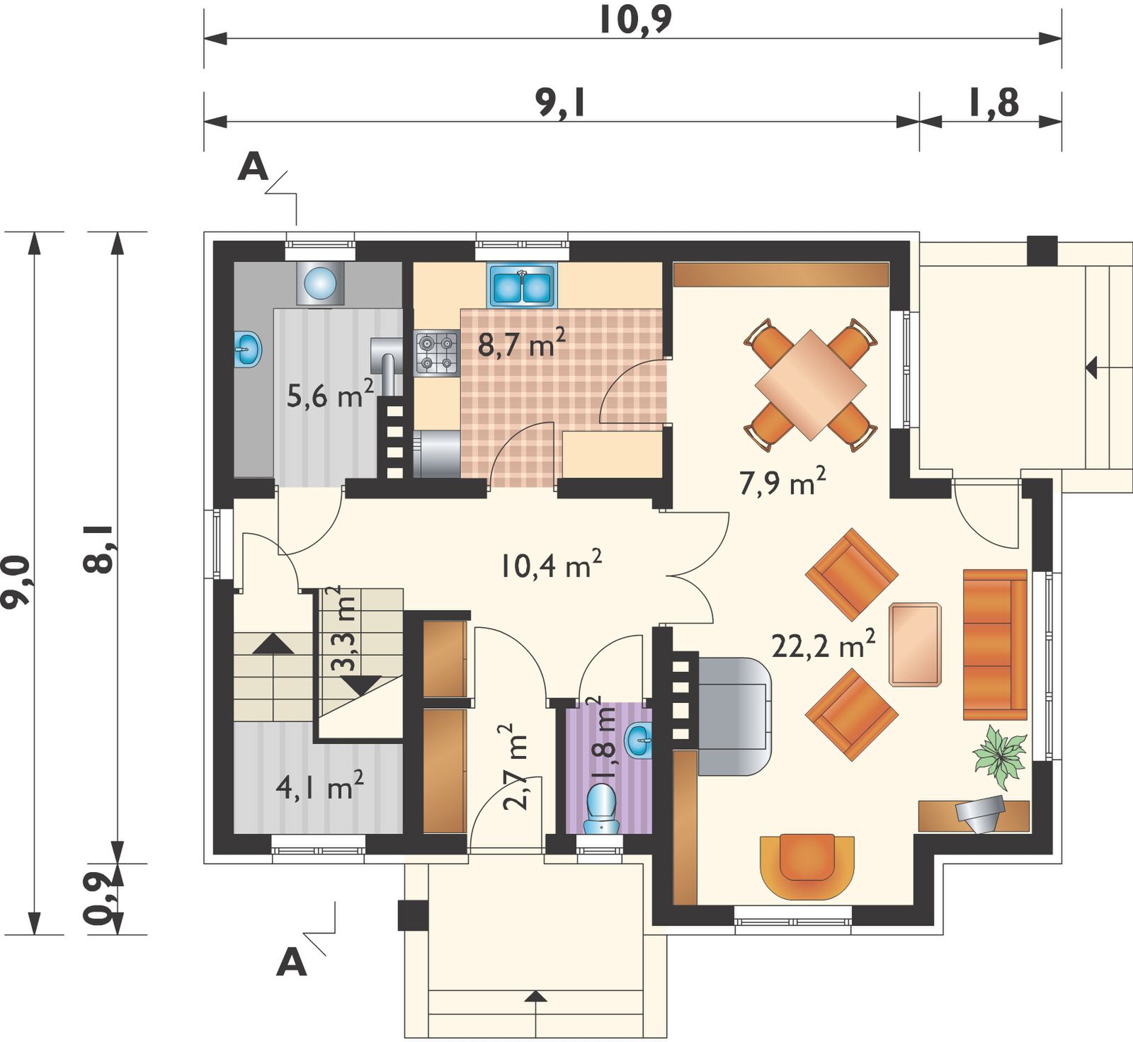 Technologia i konstrukcja: murowana – ceramika. Ściany zewnętrzne: dwuwarstwowe z bloczków ceramicznych typu "U" gr. 25 cm , ocieplone warstwą 15 cm styropianu. Ściany wewnętrzne: z bloczków ceramicznych typu "U" (na zaprawie cementowo-wapiennej) gr. 25 cm. Strop: żelbetowy. Konstrukcja dachu: drewniana, jętkowa. Rodzaj schodów: żelbetowe. Typ ogrzewania: kocioł na gaz. Wentylacja:. Aneks na paliwo stałe: dostępny (zapytaj o cenę). Pokrycie dachu: dachówka ceramiczna lub cementowa. Elewacja: tynk cienkowarstwowy.