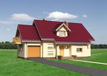 Graficzne opracowanie rzutów poglądowych widocznych na karcie projektu zostało wykonane przez Extradom.pl. Prezentowane przez Extradom.pl wizualizacje wykonane zostały przez autora projektu i należy poczytywać je jedynie za przykład i propozycję wykończenia, wizję architektoniczną autora projektu. Ostateczne wykończenie budynku może nastąpić na wiele sposobów. Szczegółowe rozwiązania zastosowane w oferowanej dokumentacji - w tym również ilość, lokalizacje i wygląd okien, drzwi, kominów - mogą w niewielkim stopniu różnić się od prezentowanej wizualizacji budynku.