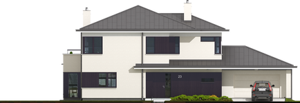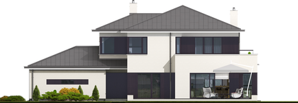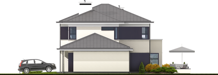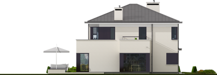 Graficzne opracowanie rzutów poglądowych widocznych na karcie projektu zostało wykonane przez Extradom.pl. Prezentowane przez Extradom.pl wizualizacje wykonane zostały przez autora projektu i należy poczytywać je jedynie za przykład i propozycję wykończenia, wizję architektoniczną autora projektu. Ostateczne wykończenie budynku może nastąpić na wiele sposobów. Szczegółowe rozwiązania zastosowane w oferowanej dokumentacji - w tym również ilość, lokalizacje i wygląd okien, drzwi, kominów - mogą w niewielkim stopniu różnić się od prezentowanej wizualizacji budynku.