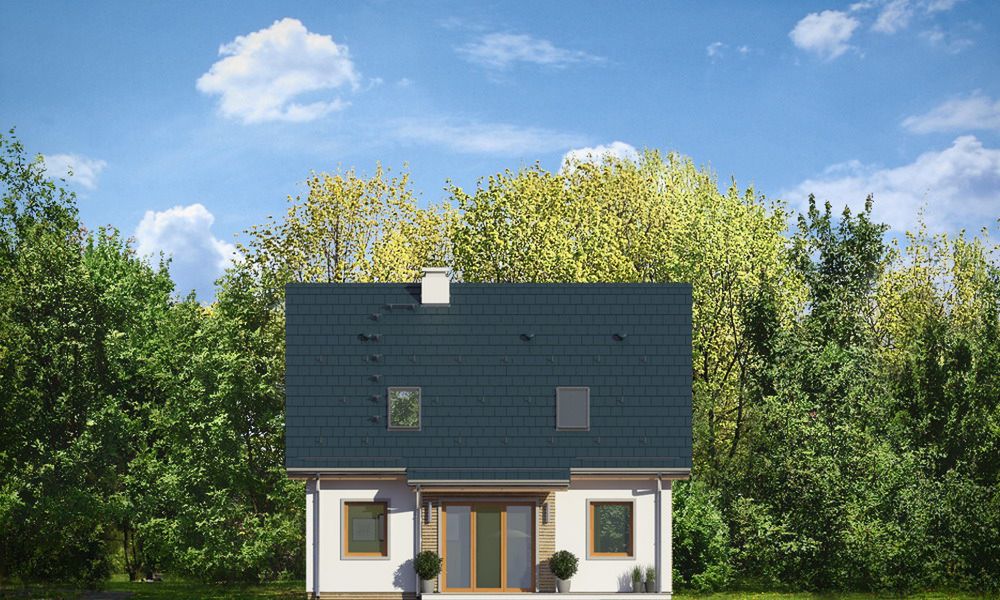 Graficzne opracowanie rzutów poglądowych widocznych na karcie projektu zostało wykonane przez Extradom.pl. Prezentowane przez Extradom.pl wizualizacje wykonane zostały przez autora projektu i należy poczytywać je jedynie za przykład i propozycję wykończenia, wizję architektoniczną autora projektu. Ostateczne wykończenie budynku może nastąpić na wiele sposobów. Szczegółowe rozwiązania zastosowane w oferowanej dokumentacji - w tym również ilość, lokalizacje i wygląd okien, drzwi, kominów - mogą w niewielkim stopniu różnić się od prezentowanej wizualizacji budynku.