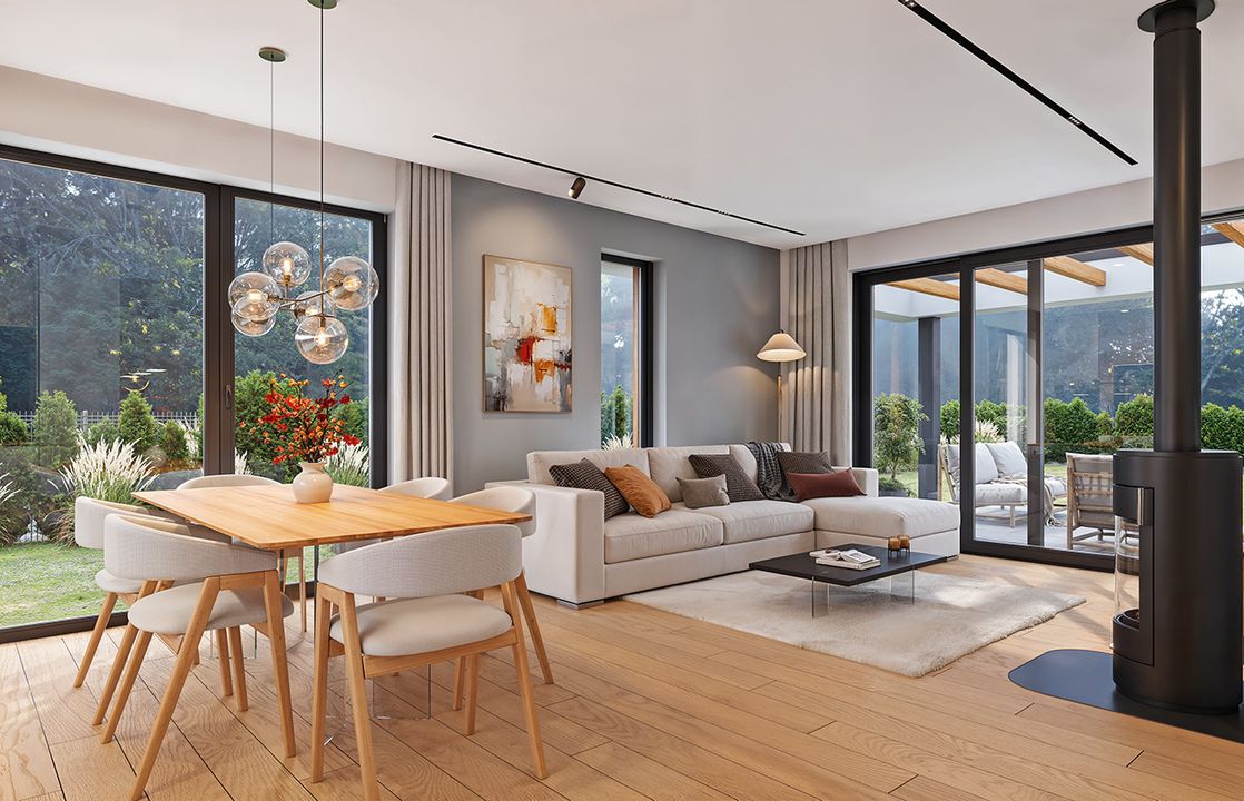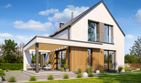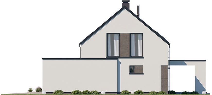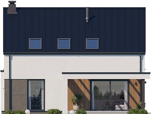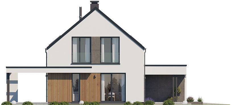 Graficzne opracowanie rzutów poglądowych widocznych na karcie projektu zostało wykonane przez Extradom.pl. Prezentowane przez Extradom.pl wizualizacje wykonane zostały przez autora projektu i należy poczytywać je jedynie za przykład i propozycję wykończenia, wizję architektoniczną autora projektu. Ostateczne wykończenie budynku może nastąpić na wiele sposobów. Szczegółowe rozwiązania zastosowane w oferowanej dokumentacji - w tym również ilość, lokalizacje i wygląd okien, drzwi, kominów - mogą w niewielkim stopniu różnić się od prezentowanej wizualizacji budynku.