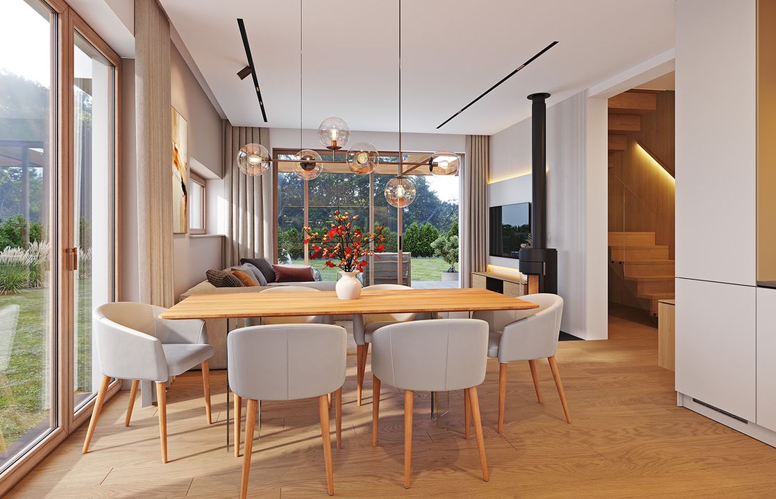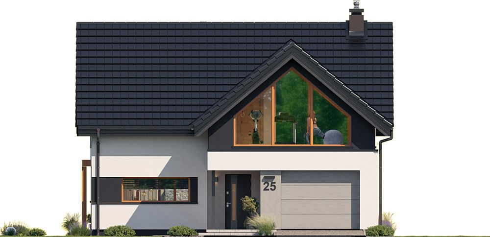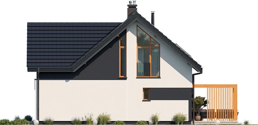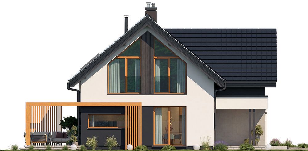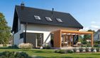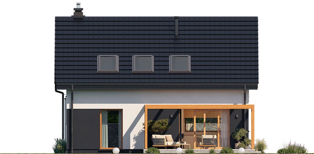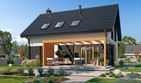 Graficzne opracowanie rzutów poglądowych widocznych na karcie projektu zostało wykonane przez Extradom.pl. Prezentowane przez Extradom.pl wizualizacje wykonane zostały przez autora projektu i należy poczytywać je jedynie za przykład i propozycję wykończenia, wizję architektoniczną autora projektu. Ostateczne wykończenie budynku może nastąpić na wiele sposobów. Szczegółowe rozwiązania zastosowane w oferowanej dokumentacji - w tym również ilość, lokalizacje i wygląd okien, drzwi, kominów - mogą w niewielkim stopniu różnić się od prezentowanej wizualizacji budynku.