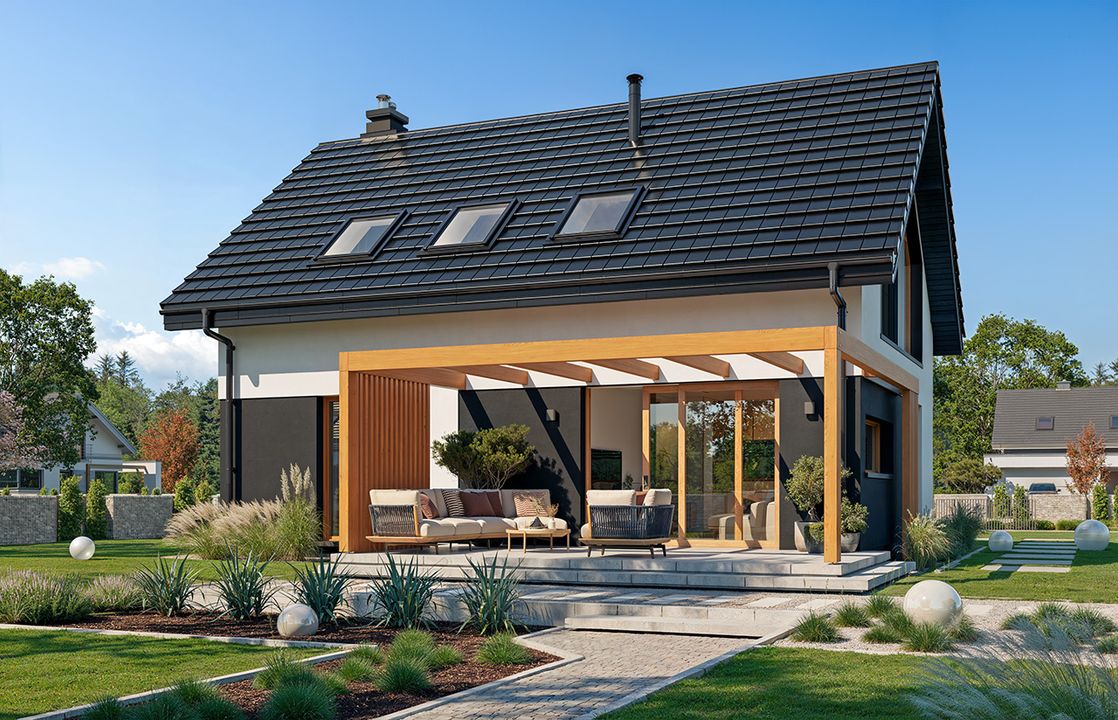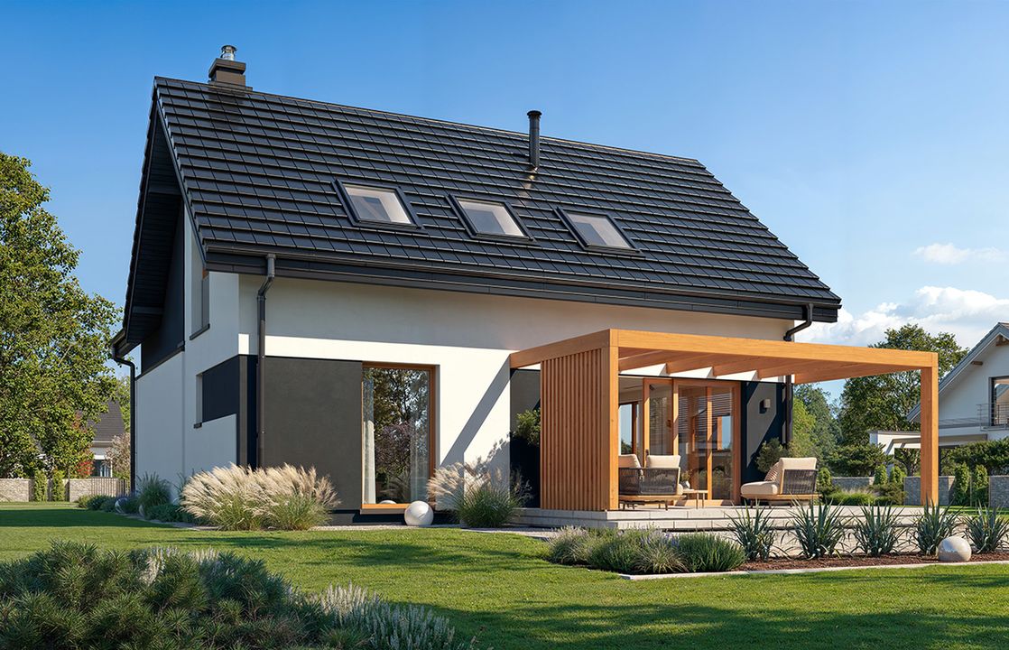 Odkryj innowacyjne rozwiązanie, które łączy funkcjonalność nowoczesnego dachu i fotowoltaiki w jednym. Kupując projekt domu otrzymasz bezpłatny poradnik SunRoof – Dach solarny 2 w 1, dzięki któremu dowiesz się, jak w prosty sposób zaoszczędzić na energii i zadbać o środowisko. Zainspiruj się nowoczesnymi technologiami!