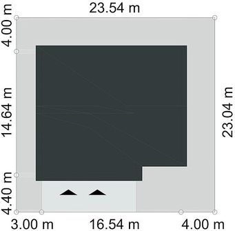 Graficzne opracowanie rzutów poglądowych widocznych na karcie projektu zostało wykonane przez Extradom.pl. Prezentowane przez Extradom.pl wizualizacje wykonane zostały przez autora projektu i należy poczytywać je jedynie za przykład i propozycję wykończenia, wizję architektoniczną autora projektu. Ostateczne wykończenie budynku może nastąpić na wiele sposobów. Szczegółowe rozwiązania zastosowane w oferowanej dokumentacji - w tym również ilość, lokalizacje i wygląd okien, drzwi, kominów - mogą w niewielkim stopniu różnić się od prezentowanej wizualizacji budynku.