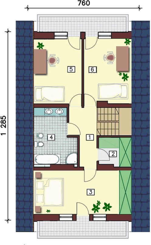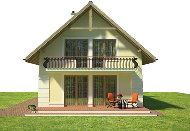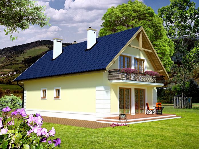 Graficzne opracowanie rzutów poglądowych widocznych na karcie projektu zostało wykonane przez Extradom.pl. Prezentowane przez Extradom.pl wizualizacje wykonane zostały przez autora projektu i należy poczytywać je jedynie za przykład i propozycję wykończenia, wizję architektoniczną autora projektu. Ostateczne wykończenie budynku może nastąpić na wiele sposobów. Szczegółowe rozwiązania zastosowane w oferowanej dokumentacji - w tym również ilość, lokalizacje i wygląd okien, drzwi, kominów - mogą w niewielkim stopniu różnić się od prezentowanej wizualizacji budynku.
