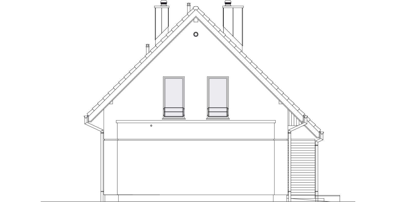 Graficzne opracowanie rzutów poglądowych widocznych na karcie projektu zostało wykonane przez Extradom.pl. Prezentowane przez Extradom.pl wizualizacje wykonane zostały przez autora projektu i należy poczytywać je jedynie za przykład i propozycję wykończenia, wizję architektoniczną autora projektu. Ostateczne wykończenie budynku może nastąpić na wiele sposobów. Szczegółowe rozwiązania zastosowane w oferowanej dokumentacji - w tym również ilość, lokalizacje i wygląd okien, drzwi, kominów - mogą w niewielkim stopniu różnić się od prezentowanej wizualizacji budynku.