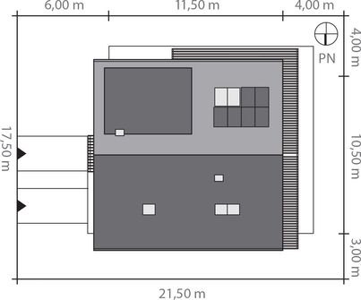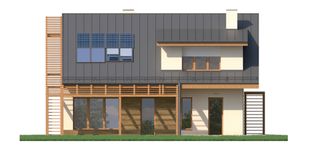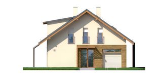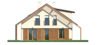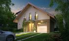 Graficzne opracowanie rzutów poglądowych widocznych na karcie projektu zostało wykonane przez Extradom.pl. Prezentowane przez Extradom.pl wizualizacje wykonane zostały przez autora projektu i należy poczytywać je jedynie za przykład i propozycję wykończenia, wizję architektoniczną autora projektu. Ostateczne wykończenie budynku może nastąpić na wiele sposobów. Szczegółowe rozwiązania zastosowane w oferowanej dokumentacji - w tym również ilość, lokalizacje i wygląd okien, drzwi, kominów - mogą w niewielkim stopniu różnić się od prezentowanej wizualizacji budynku.