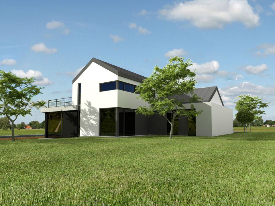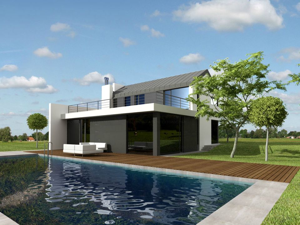 Graficzne opracowanie rzutów poglądowych widocznych na karcie projektu zostało wykonane przez Extradom.pl. Prezentowane przez Extradom.pl wizualizacje wykonane zostały przez autora projektu i należy poczytywać je jedynie za przykład i propozycję wykończenia, wizję architektoniczną autora projektu. Ostateczne wykończenie budynku może nastąpić na wiele sposobów. Szczegółowe rozwiązania zastosowane w oferowanej dokumentacji - w tym również ilość, lokalizacje i wygląd okien, drzwi, kominów - mogą w niewielkim stopniu różnić się od prezentowanej wizualizacji budynku.