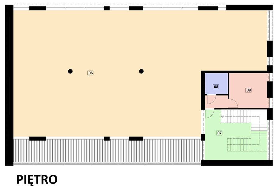 Sciany zewnętrzne z bloczkow o szerokosci 18-20cm docieplonych styropianem 15cm, posadowione na betonowych fundamentach. Sciany wewnetrzne w konstrukcji szkieletowej lub muro . Strop monolityczny zelbetowy. Elewacje pokryte tynkiem strukturalnym. Konstrukcja dachu-stropodach pokrycie EPDM.