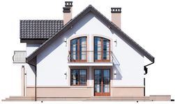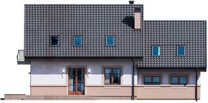 Graficzne opracowanie rzutów poglądowych widocznych na karcie projektu zostało wykonane przez Extradom.pl. Prezentowane przez Extradom.pl wizualizacje wykonane zostały przez autora projektu i należy poczytywać je jedynie za przykład i propozycję wykończenia, wizję architektoniczną autora projektu. Ostateczne wykończenie budynku może nastąpić na wiele sposobów. Szczegółowe rozwiązania zastosowane w oferowanej dokumentacji - w tym również ilość, lokalizacje i wygląd okien, drzwi, kominów - mogą w niewielkim stopniu różnić się od prezentowanej wizualizacji budynku.