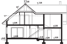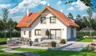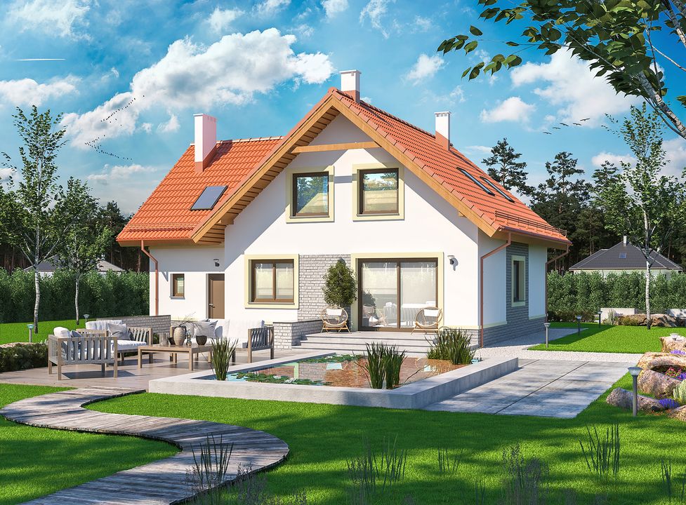 Graficzne opracowanie rzutów poglądowych widocznych na karcie projektu zostało wykonane przez Extradom.pl. Prezentowane przez Extradom.pl wizualizacje wykonane zostały przez autora projektu i należy poczytywać je jedynie za przykład i propozycję wykończenia, wizję architektoniczną autora projektu. Ostateczne wykończenie budynku może nastąpić na wiele sposobów. Szczegółowe rozwiązania zastosowane w oferowanej dokumentacji - w tym również ilość, lokalizacje i wygląd okien, drzwi, kominów - mogą w niewielkim stopniu różnić się od prezentowanej wizualizacji budynku.