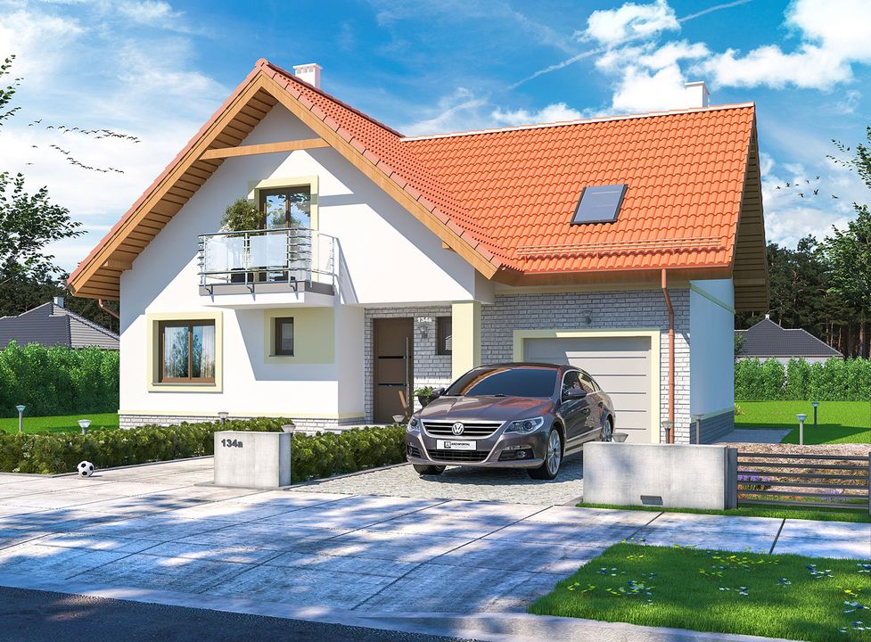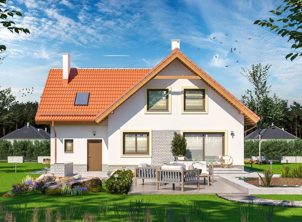 Spośród wszystkich propozycji budynków jakie oglądałem do gustu najbardziej przypadł mi projekt domu Puk 2 WOE1074. Pod wieloma względami spełniał potrzeby naszej rodziny i wiedziałem, że jego realizacja będzie dobrą decyzją. Duży wpływ na mój wybór miał układ pomieszczeń, który został bardzo funkcjonalnie przemyślany. Oprócz tego spodobało mi się zlokalizowanie kotłowni za garażem, gdyż nie znajduje się bezpośrednio przy części mieszkalnej, co jest szczególnie istotne przy ogrzewaniu paliwem stałym.Budowa odbyła się się całkiem sprawnie. Fachowcy dobrze wykonywali powierzone prace, a jedyna nieścisłość w dokumentacji dotyczyła ścianki, która zgodnie z wyliczeniami nachodziła na okno, jednak nie było to nic co wpłynęło na przebieg inwestycji. Murarze z łatwością sobie z tym poradzili, a cała realizacja trwała ok. 2,5 roku. Projekt domu Puk 2 WOE1074 nabyliśmy we wrześniu 2014 r. i niedługo po zakupie przystąpiliśmy do budowy. Pod koniec roku budynek był już przykryty dachem i zostawiliśmy go do odstania przez zimę. Wiosną 2015 r. ruszyliśmy z pozostałymi pracami, a do w pełni wykończonego domu wprowadziliśmy się w lipcu 2017 r.Dom został postawiony przy użyciu gazobetonowych bloczków H+H murowanych na klej. Zmieniliśmy zalecaną przez architekta metodę wykonywania stropu i zamiast żelbetowego zastosowaliśmy gęstożebrowy strop Teriva. Dach pokryliśmy blachodachówką. Muszę jednak przyznać, że mimo zastosowania tańszego pokrycia w stosunku do sugerowanego w projekcie, przekroczyliśmy kwotę oszacowaną w kosztorysie. Budynek na etapie stanu surowego otwartego wyniósł nas ok. 135 tys. zł, więc myślę, że realizując projekt Puk 2 WOE1074 i korzystając ze wskazanych w nim materiałów bezpieczniej założyć nieco wyższe koszta. Cała inwestycja „pod klucz” wyniosła ok. 400 tys. zł.Projekt domu parterowego z poddaszem użytkowym Puk 2 WOE1074 uwzględnia doskonale zaplanowany układ pomieszczeń. Spodobał mi się na tyle, iż właściwie w całości wykonałem go zgodnie z oryginalną wersją. Zdecydowałem się jednak na zmianę wejścia do garderoby na półpiętrze i obecnie jest ona dostępna z sypialni znajdującej się na tym samym poziomie. Jednocześnie wyprostowałem ściankę między tymi pomieszczeniami. Świetnym pomysłem było również wstawienie dodatkowych okien w garażu oraz pokoju nad nim i szczerze polecam to rozwiązanie innym Inwestorom. Oprócz tego zmieniliśmy konstrukcję schodów na drewnianą.Jestem zadowolony z wyboru projektu domu Puk 2 WOE1074. Wnętrze jest przestronne i komfortowe w codziennym użytkowaniu. Komunikacja między pomieszczeniami jest wygodna, a dodatkowo nie brakuje w nim praktycznych rozwiązań jak spiżarka czy pomieszczenia gospodarcze. Odwiedzający nas znajomi, którzy również niedawno wybudowali swoje domy bardzo chwalą funkcjonalność naszego i często mówią nawet, iż z chęcią by się zamienili :-). Projekt domu Puk 2 WOE1074 spełnia nasze oczekiwania. Pozdrawiam.