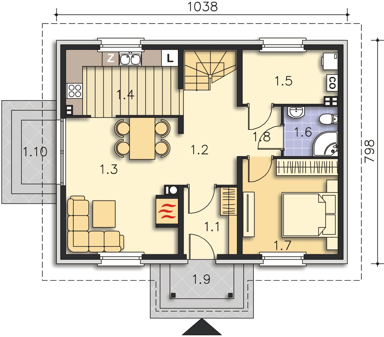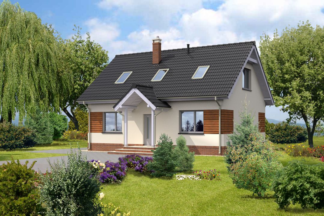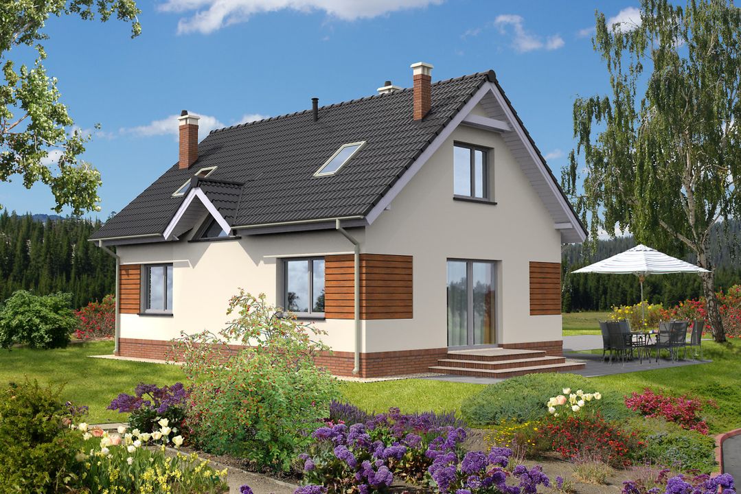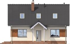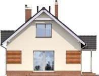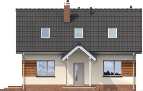 Graficzne opracowanie rzutów poglądowych widocznych na karcie projektu zostało wykonane przez Extradom.pl. Prezentowane przez Extradom.pl wizualizacje wykonane zostały przez autora projektu i należy poczytywać je jedynie za przykład i propozycję wykończenia, wizję architektoniczną autora projektu. Ostateczne wykończenie budynku może nastąpić na wiele sposobów. Szczegółowe rozwiązania zastosowane w oferowanej dokumentacji - w tym również ilość, lokalizacje i wygląd okien, drzwi, kominów - mogą w niewielkim stopniu różnić się od prezentowanej wizualizacji budynku.