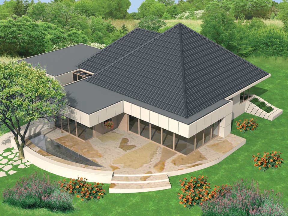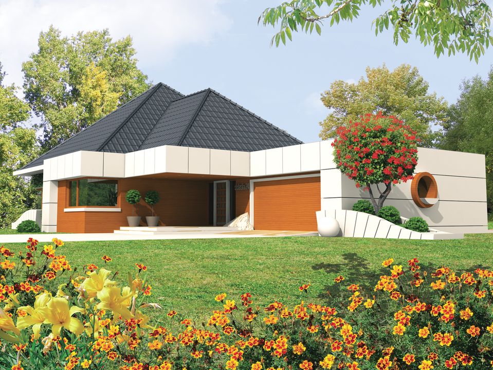 Graficzne opracowanie rzutów poglądowych widocznych na karcie projektu zostało wykonane przez Extradom.pl. Prezentowane przez Extradom.pl wizualizacje wykonane zostały przez autora projektu i należy poczytywać je jedynie za przykład i propozycję wykończenia, wizję architektoniczną autora projektu. Ostateczne wykończenie budynku może nastąpić na wiele sposobów. Szczegółowe rozwiązania zastosowane w oferowanej dokumentacji - w tym również ilość, lokalizacje i wygląd okien, drzwi, kominów - mogą w niewielkim stopniu różnić się od prezentowanej wizualizacji budynku.