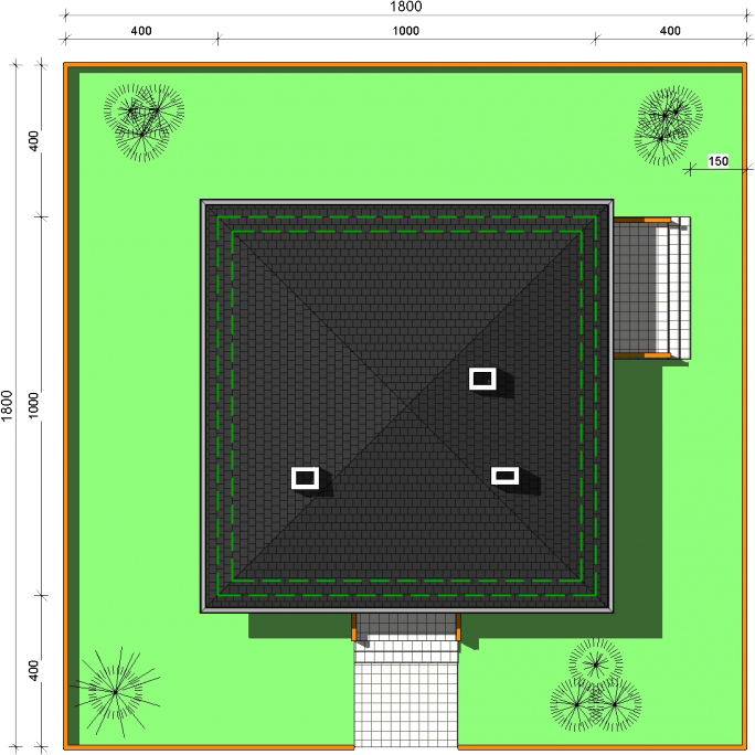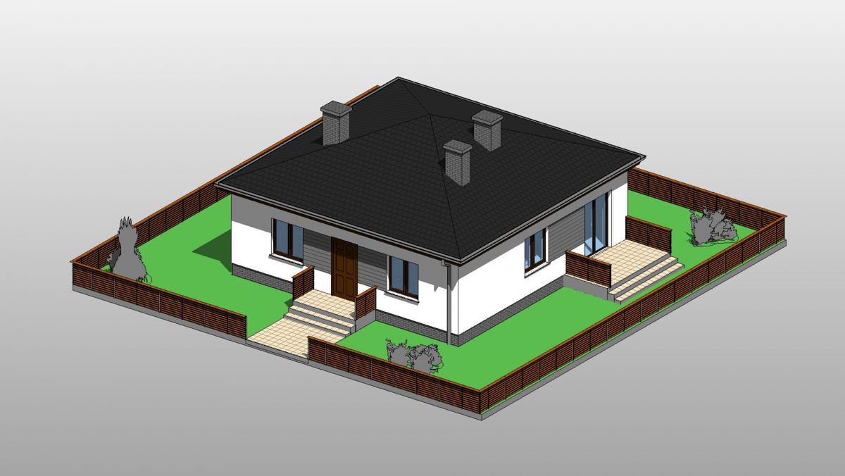 Graficzne opracowanie rzutów poglądowych widocznych na karcie projektu zostało wykonane przez Extradom.pl. Prezentowane przez Extradom.pl wizualizacje wykonane zostały przez autora projektu i należy poczytywać je jedynie za przykład i propozycję wykończenia, wizję architektoniczną autora projektu. Ostateczne wykończenie budynku może nastąpić na wiele sposobów. Szczegółowe rozwiązania zastosowane w oferowanej dokumentacji - w tym również ilość, lokalizacje i wygląd okien, drzwi, kominów - mogą w niewielkim stopniu różnić się od prezentowanej wizualizacji budynku.